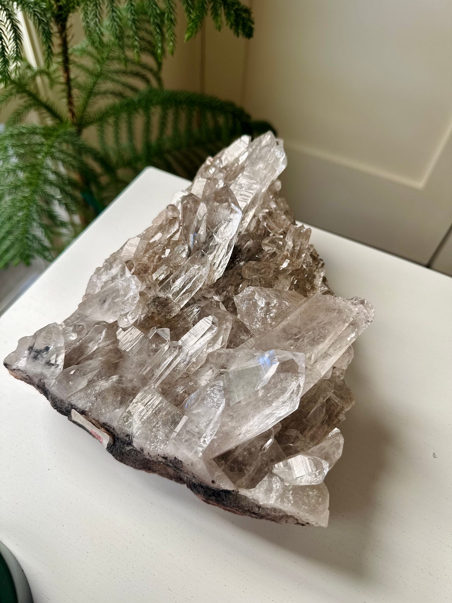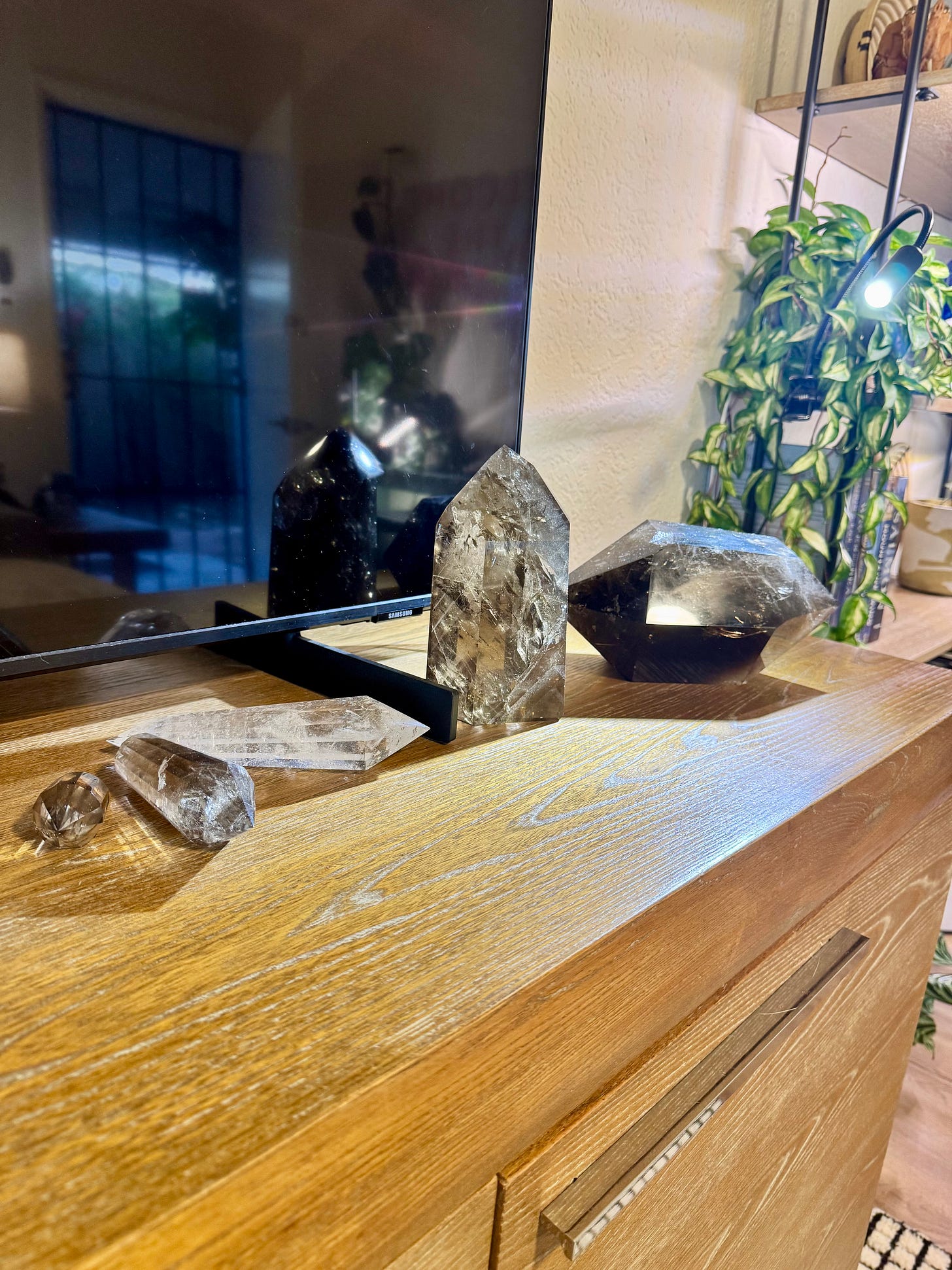 The Smokey Quartz on the far right was Diana’s birthday present in 2024… it is one-of-a-kind. We recently purchased another beautiful Smokey Quartz (to its left). The far left shows three of our Vogel Stones.