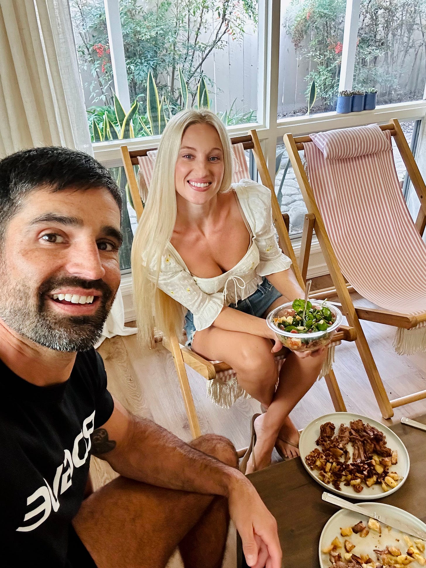 Before Diana lived with me, my house was barebones: a bed, a tv, and a home gym. Perfect for a bachelor, not for a bachelor who wanted his forever person. This was our first Thanksgiving together: smoked brisket, air-fried potatoes, an apple and roasted pecan salad - and Diana bringing her beach chairs so we could actually sit down and enjoy it.