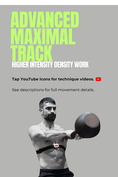 • Advanced Maximal Track (Kettlebell) — higher intensity density work for experienced trainees ready for greater training demands