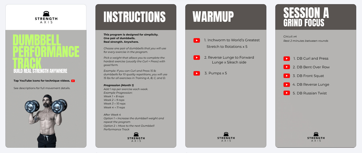 • Dumbbell Track (Brand New) — accessible strength training with minimal equipment and clear progression
